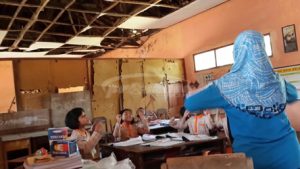Kepada sejumlah wartawan, Titik mengaku prihatin dengan kondisi sekolahnya karena jika musim hujan siswa harus belajar di teras. Jika musim kemarau seperti sekarang, siswa belajar di bawah atap bangunan yang hancur. (Fathul)