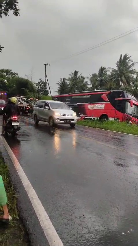 Setibanya di lokasi kejadian, sebuah mobil APV hitam bernomor polisi P-1488-WD tiba-tiba berhenti mendadak. Sopir bus kemudian membanting setir ke kiri hingga kendaraan keluar jalur dan masuk ke area persawahan, bahkan nyaris terperosok ke jurang. Meski demikian, tidak ada korban jiwa maupun luka dalam peristiwa tersebut.