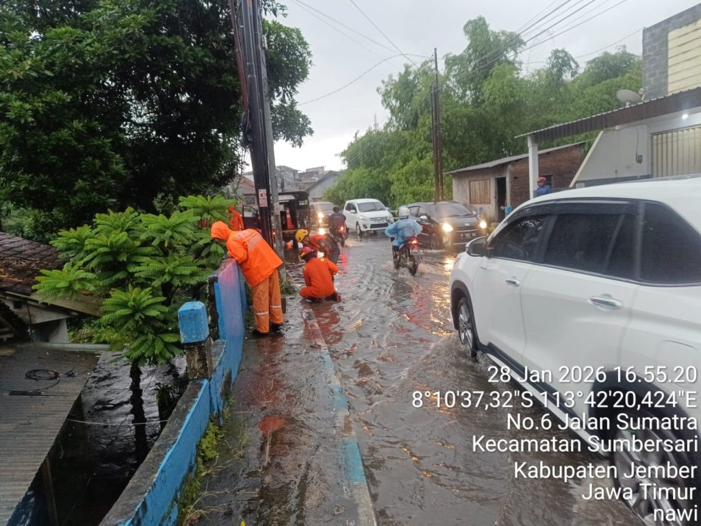 Jember Hari Ini – Hujan dengan intensitas cukup tinggi yang mengguyur wilayah Kabupaten Jember pada Rabu sore hingga malam (28) Januari 2026, menyebabkan banjir luapan di sejumlah titik kawasan perkotaan. Badan penanggulangan bencana daerah (BPBD) Jember mencatat sedikitnya tiga kecamatan dan enam kelurahan terdampak, dengan total 16 titik banjir.